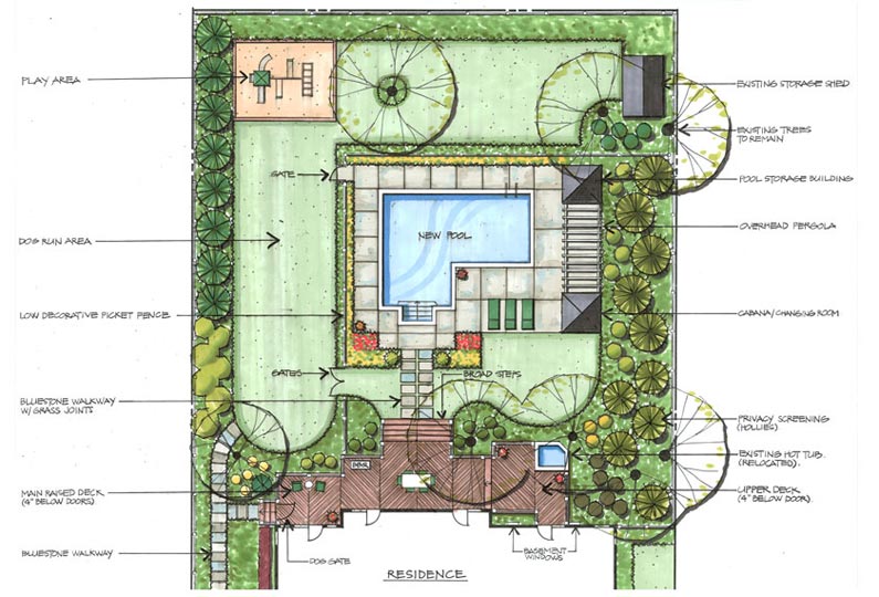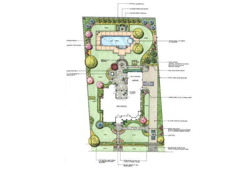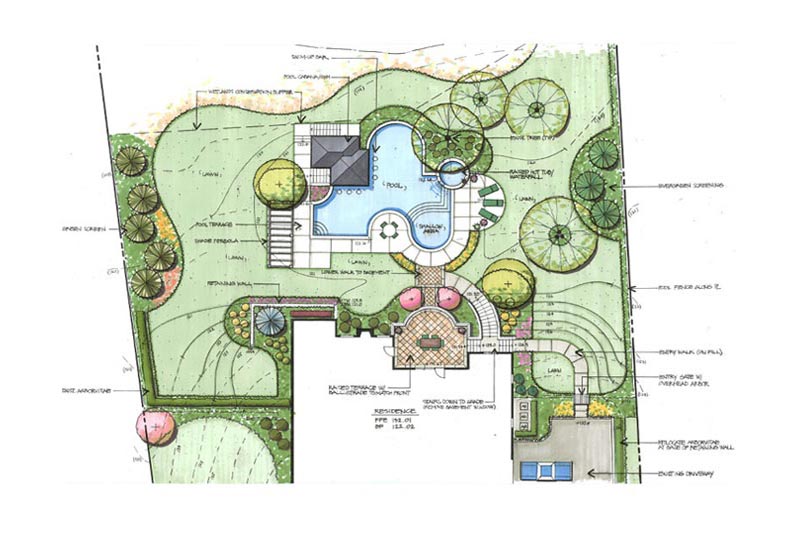 During the initial consultation, we meet with our clients to discuss the scope of the project. At this time, clients should have an idea of their “wish list”-all the elements they want to incorporate into their Conceptual Masterplan. Each Masterplan is unique, designed to reflect the client’s taste and lifestyle, as well as to complement the architectural style of the home.