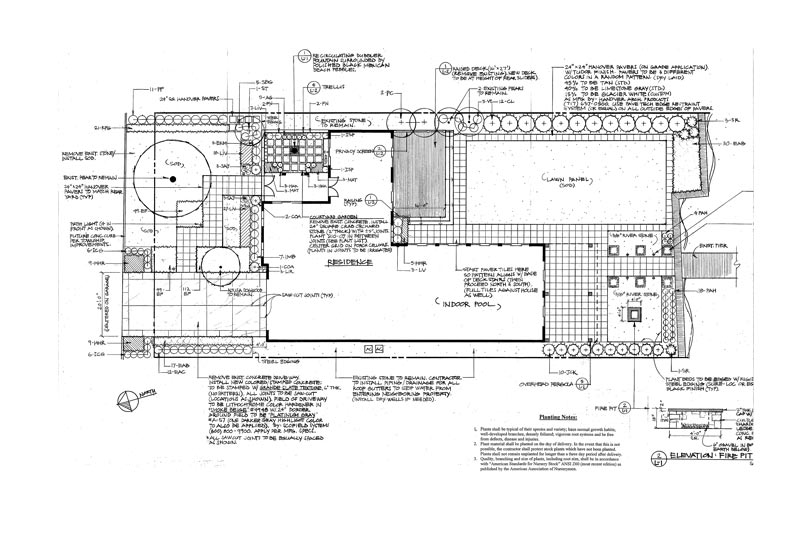 Once the Conceptual Masterplan is finalized and approved by the clients, the second phase of the design process is Construction Drawings. These drawings, similar to architect’s blueprints, documents the work to be done by contractors using drawings, technical details, notes and specifications. These plans include construction layout & dimensioning, grading design, construction details, material selection, lighting plans and planting plans. The completed set of drawings can then be submitted to contractors for bidding purposes.